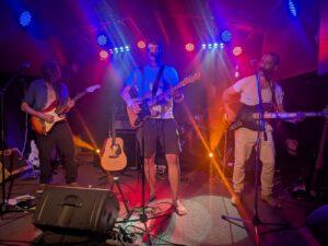 C’est Leon qui a ouvert la soirée, avec un set entièrement composé de morceaux originaux. Le groupe a proposé un univers mélancolique et habité, naviguant entre douceur folk et éclats plus sauvages. Soutenus par la batterie d’Éric, les guitares de Quentin et Vincent, et la voix habitée de ce dernier, les titres se sont enchaînés dans une atmosphère à la fois intime et électrique.